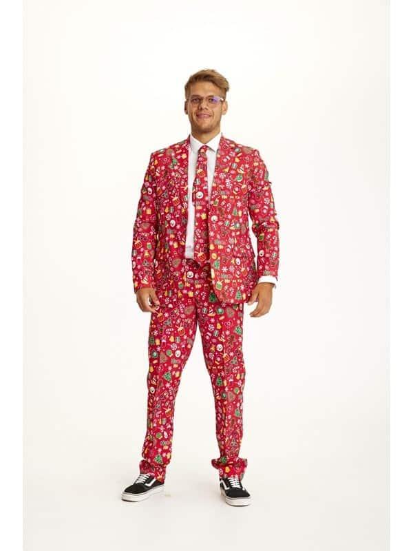 Gør dig klar til julens fester med et stilfuldt julesuit Er du klar til at blive festens midtpunkt? Dette julesuit kombinerer julestemning med elegance, så du kan skinne til enhver julefrokost eller festlig lejlighed. Med perfekt pasfor