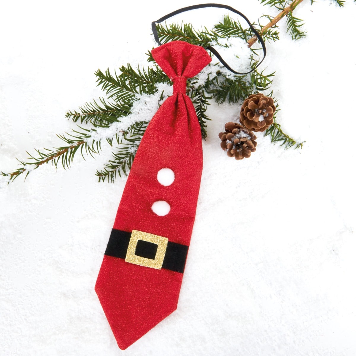 Skønt julemandsslips i filt med elastik. Måler 39 cm i længden.